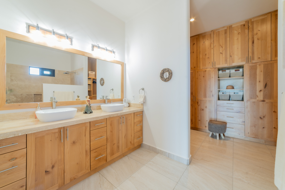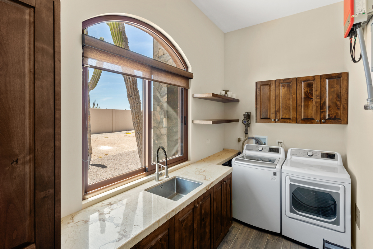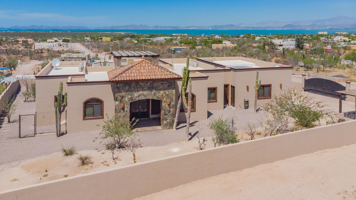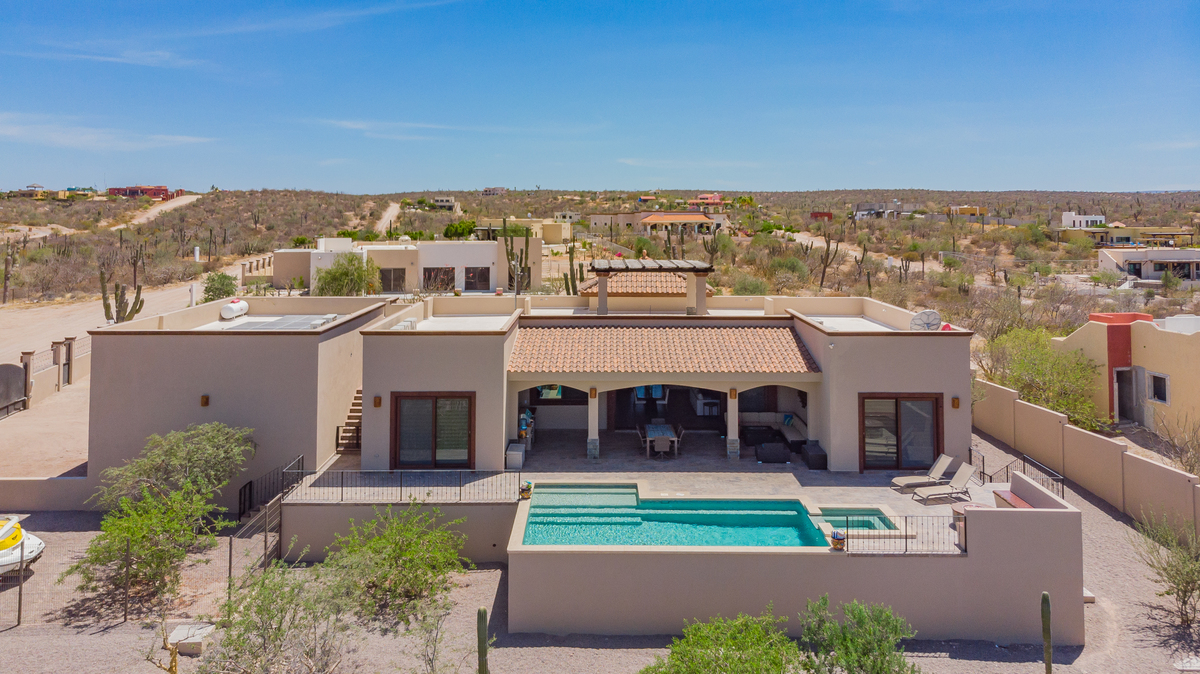 La recámara principal ofrece un refugio privado con doble tocador, ducha de mármol y vestidor, mientras que las dos recámaras para huéspedes brindan comodidad y privacidad para recibir a familia o amigos. La casa también cuenta con baño de visitas, área de lavandería, unidades de A/C y ventiladores de techo en cada habitación, garantizando frescura y bienestar en todo momento. Casa Mogote no es solo una vivienda; es una invitación a vivir con amplitud, estilo y el encanto natural de Baja California Sur.