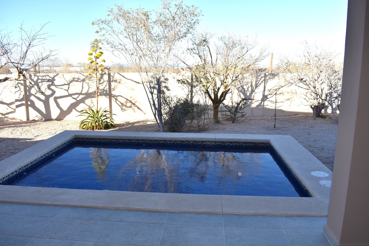 Casa Tesoro es una casa casi terminada en la comunidad de Villas del Centenario. Esta casa 2BR/ 2BA tiene 130 m2/ 1,401 ft2 de área habitable interior y un gran patio 61 m2/ 657 ft2. La entrada frontal cubierta da la bienvenida a los visitantes en una sala de estar/cocina/comedor abierta con techos de 10′ y puertas correderas de vidrio que se abren a la terraza cubierta con piscina y cocina exterior incorporada. Los gabinetes de madera hechos a medida, azulejos de gran tamaño, encimeras de granito y electrodomésticos de acero inoxidable están incluidos. La suite principal cuenta con tocadores dobles en el baño, ducha de baldosas de mármol y vestidores, y ambos dormitorios tienen acceso independiente al patio. Otras características incluyen un lavadero, unidades A/C y ventiladores de techo.